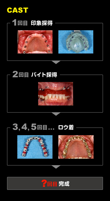 ハンドメイド技工(CAST)とCAD/CAM技工のステップ比較